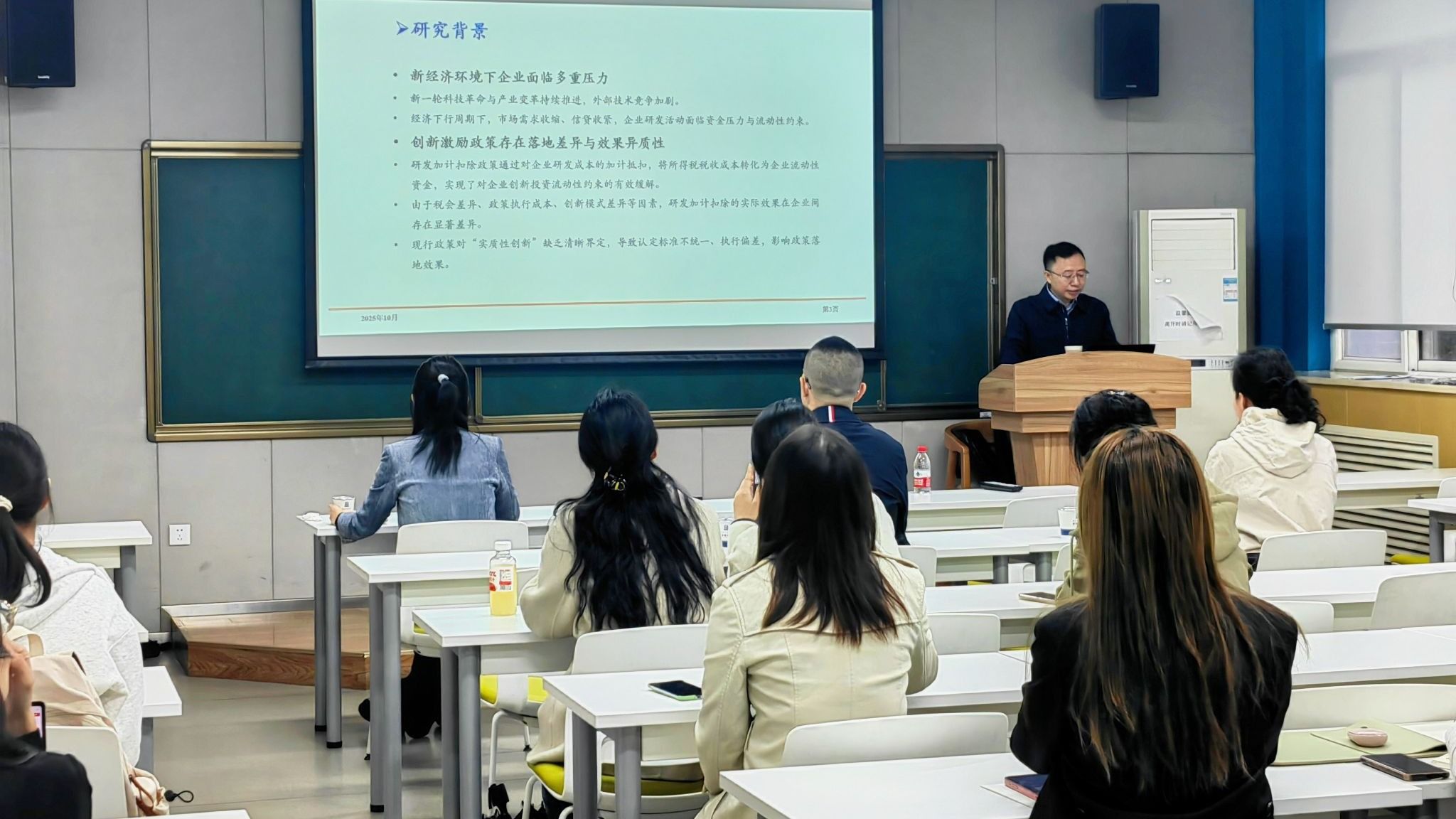 邀请,对外经济贸易大学祝继高教授在长安校区学院楼214报告厅与学院师生展开学术交流,作题为“创新成本分担的溢出效应:研发费用加计扣除政策对劳动收入份额的影响研究”的学术讲座。本次讲座由博彩网站大全